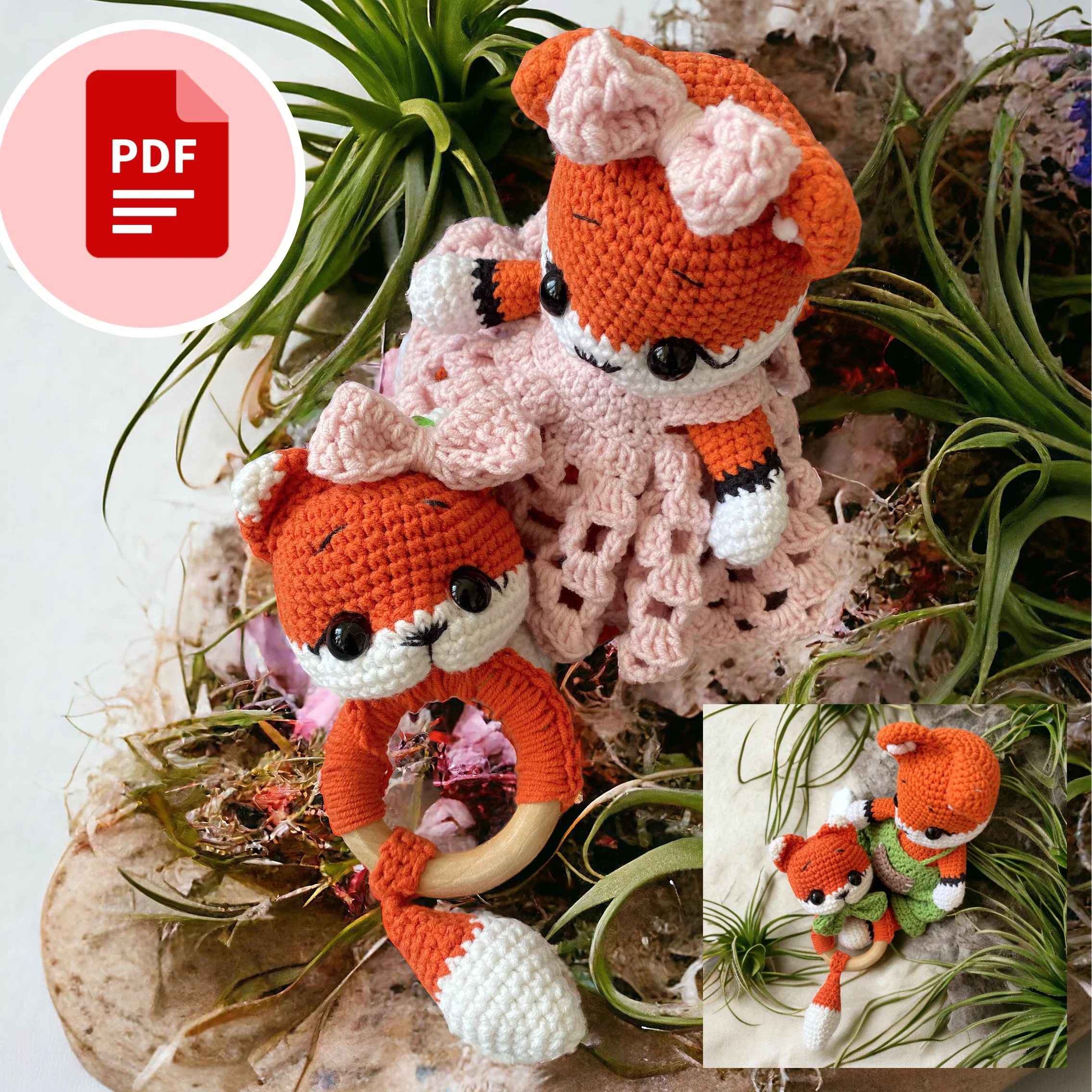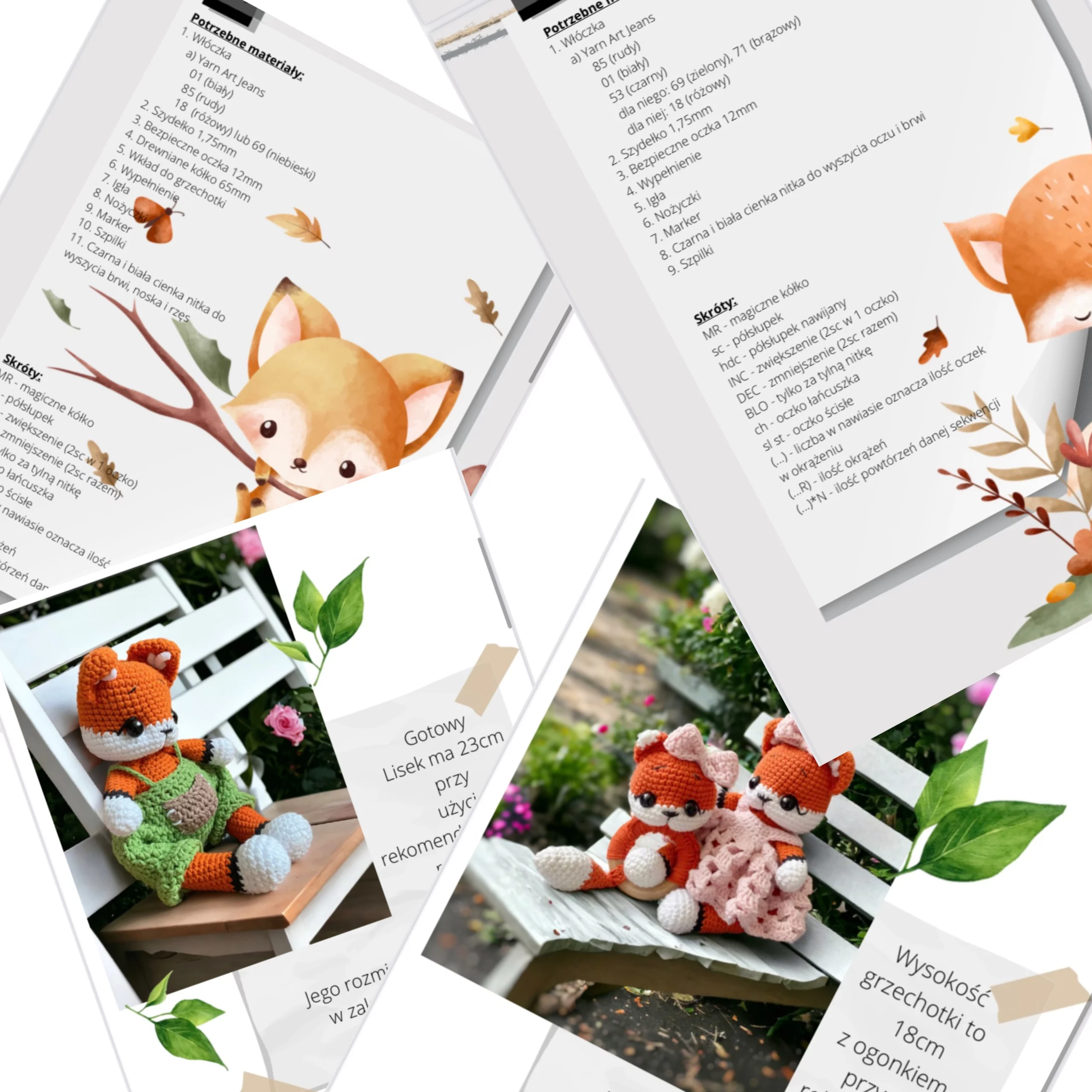Pakiet: Maskotka i grzechotka Lisek “Maluszki” – szydełkowy wzór – PDF po polsku i angielsku